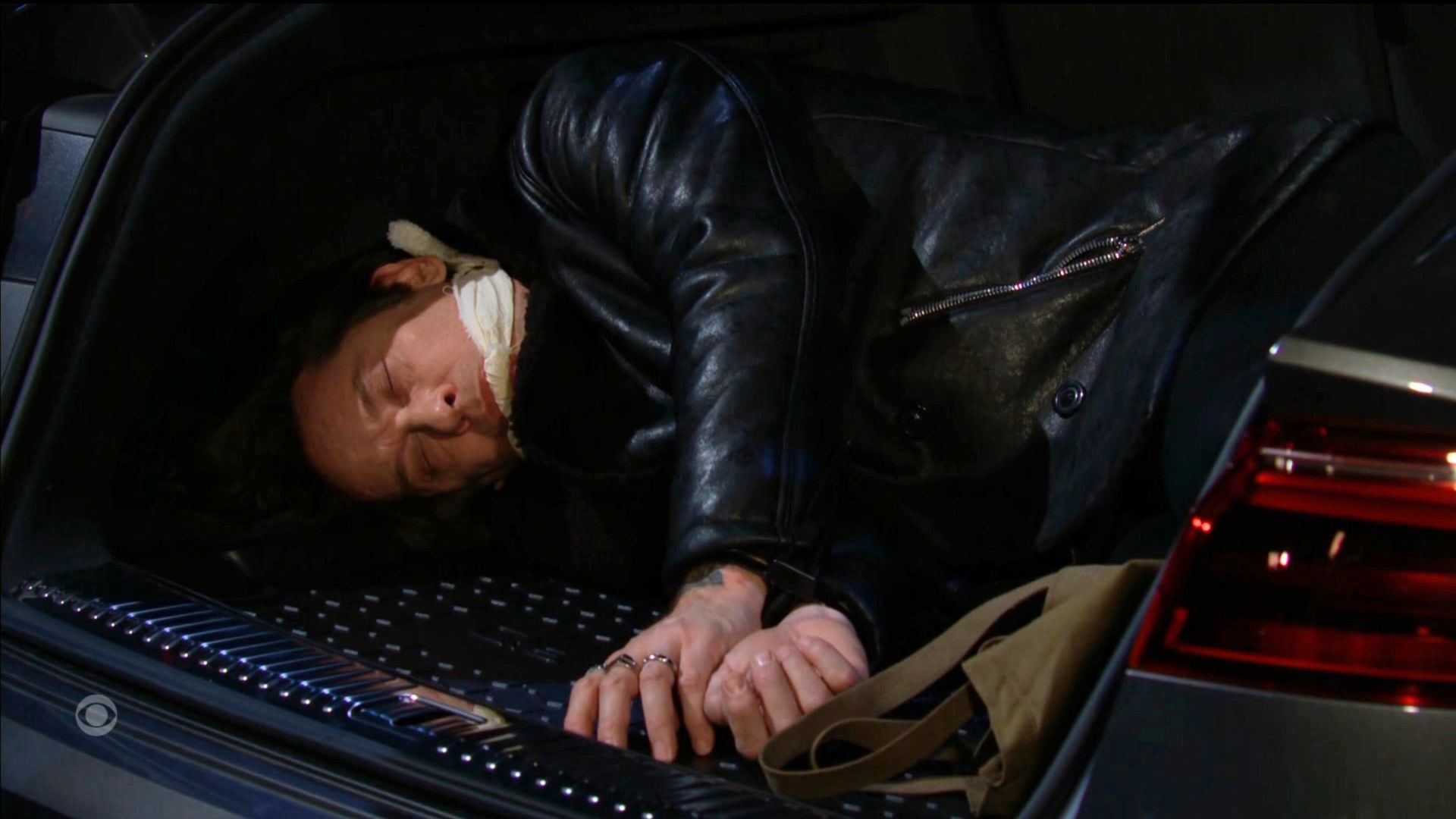 Victor is plotting to deal with Matt on The Young and the Restless, but has the whole question become moot? We're wondering if the man is still alive, given his current predicament. He could either croak or rise like a phoenix from the ashes. Nick, at last, has learned at least something. The last time he had "control" over Matt, he kept him zip-tied up in the back seat of his car. Matt got free, caused Nick to crash his car, and now, Nick's on the fast lane to getting hooked on painkillers. This time, he's got Matt tied up in the trunk and gagged so Matt can't taunt Nick like he did the last time they were together. But why are Matt's hands held together in front of him, presumably with the same type of bonds he was able to wriggle out of the last time? Don't trunks in expensive cars have escape levers in case a person is trapped inside one? Hasn't Matt proven to be resourceful in escaping in the past? Is anyone currently watching Matt to make sure he doesn't escape? Does Matt have enough air to breathe in the trunk? What happens if he were to throw up? Would he choke on his vomit like Jill Bennett (Teri Austin) did on Knots Landing when she was tied up and gagged in Gary Ewing's (Ted Shackelford; ex-Jeffrey, Y&R) car? Granted, Jill was trying to frame Gary for her kidnapping, but Matt could end up throwing up and choking to death, too. Then, Nick truly could be facing inadvertent manslaughter charges. We don't want that!